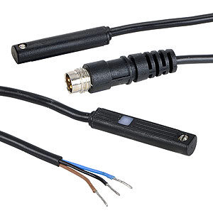 Small 1/4 inch round solid-state switches mount on pneumatic cylinders with corresponding-sized slots, such as models from Norgren Inc.