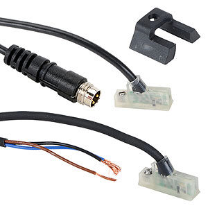 Dovetail-shaped solid-state position switches mount on pneumatic cylinders with 1/4 inch x 60-degree dovetail slots; adapters are available to fit them into larger dovetail slots. Straight or 45-degree cable entry models are available.