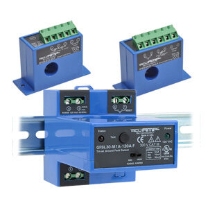 Ground fault sensors detect leakage currents at low trip levels in grounded AC systems to protect people, equipment, and processes from damage caused by ground faults. Jumper-selectable setpoints help reduce nuisance tripping while ensuring effective protection for sensitive machine electronics.