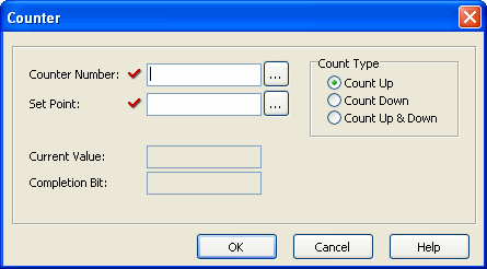 When enabled, a Counter instruction counts up or down (depending on user settings) until it reaches the Set Point. The Counter counts