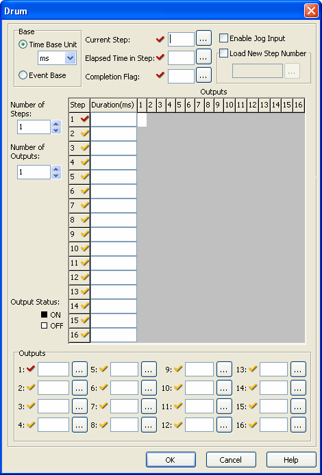 The Drum instruction is used to simulate an electro-mechanical drum sequencer. It works on time base or event base.