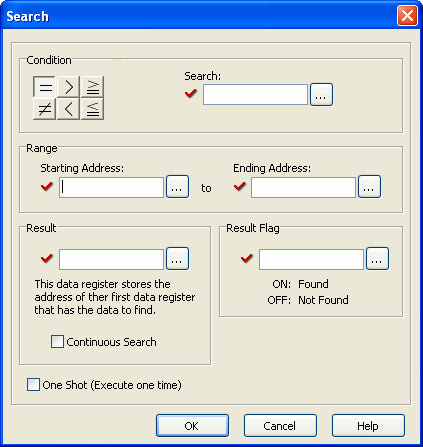 range of data registers. A successful search returns the Memory Address of the value that satisfies the conditions.