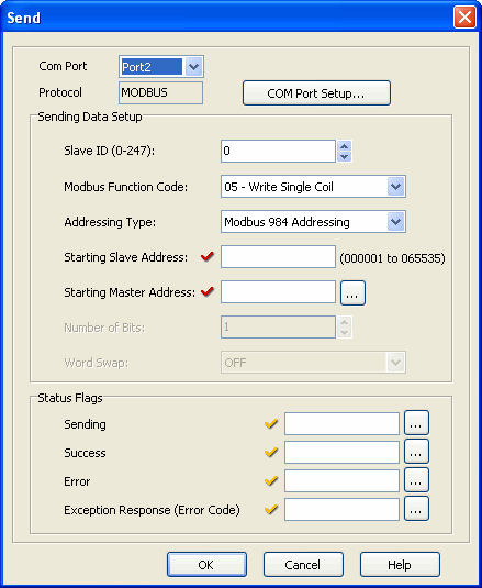 The Send Instruction allows your ladder program to send Modbus or ASCII communications to other devices.