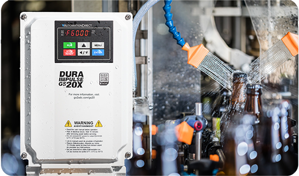 The Productivity PLC programming software is designed to automatically recognize any AutomationDirect GS series drive. Simply connect the drive to the PLC's remote I/O port via an Ethernet connection and the drive will be discovered and added to the Productivity Suite software.